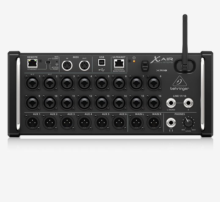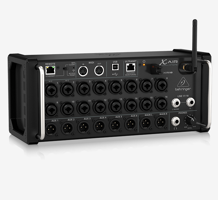 El Behringer XR18 es un mezclador de rack digital versátil con 18 entradas analógicas, 4 procesadores de efectos estéreo internos (8 Mono) y una gran cantidad de efectos clásicos. Se puede acceder fácilmente a todo esto con una PC o tableta y la operación es increíblemente simple.