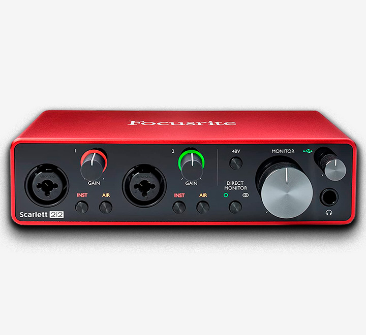 - Dos de los preamplificadores de micrófono de mejor rendimiento que la gama Scarlett ha visto, ahora con modo de aire conmutable para dar a tus grabaciones un sonido más brillante y más abierto. Dos entradas de instrumento de alta altura para conectar tu guitarra o bajo. Dos entradas de línea equilibradas, adecuadas para conectar fuentes de nivel de línea.